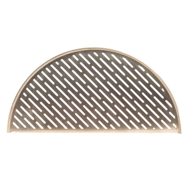 Die halbrunde lasergeschnittene Edelstahlfläche BJ-HSSCGFV ist Teil des patentierten, flexiblen Kochsystems „Divide & Conquer“ von Kamado. Revolutionär sind die unterschiedlichen Ebenen und die halben Grillflächen: So wird Platz geschaffen, um zeitgleich verschiedene Zutaten bei unterschiedlichen Temperaturen individuell zubereiten zu können. Die halbrunde lasergeschnittene Edelstahlfläche BJ-HSSCGFV in doppelter Dicke ist extrem glatt und damit ideal, um Gemüse und zarten Fisch gleichmäßig zu garen. Sie passt für den für Kamado Big Joe mit Ø 61cm.Art.-Nr.: 1528427