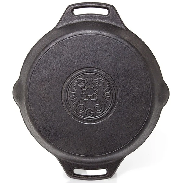 Die gusseiserne Petromax Feuerpfanne fp20h gehört mit ihrer exzellenten Wärmespeicherung zur Ausstattung jeder Küche. Ob in der Draußen-Küche über dem offenen Feuer gekocht wird oder auf dem Herd zuhause, man kann die Feuerpfanne sowohl auf herkömmlichen Herdplatten, auf Gasflammen, im Backofen als auch im Freien auf einer Kochstelle, über einem Lagerfeuer oder auf einem passenden Grill verwenden. Das Gusseisen mit seiner ausgezeichneten Wärmeverteilung und -speicherung ist dank der vorbehandelten Oberfläche (seasoned finish) sofort einsatzbereit und leicht zu pflegen.Art.-Nr.: 1532891