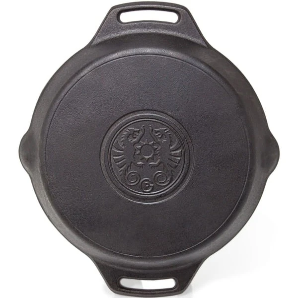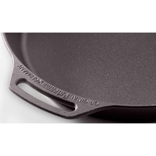 Die gusseiserne Petromax Feuerpfanne fp30h-t gehört mit ihrer exzellenten Wärmespeicherung zur Ausstattung jeder Küche. Ob in der Draußen-Küche über dem offenen Feuer gekocht wird oder auf dem Herd zuhause, man kann die Feuerpfanne sowohl auf herkömmlichen Herdplatten, auf Gasflammen, im Backofen als auch im Freien auf einer Kochstelle, über einem Lagerfeuer oder auf einem passenden Grill verwenden. Das Gusseisen mit seiner ausgezeichneten Wärmeverteilung und -speicherung ist dank der vorbehandelten Oberfläche (seasoned finish) sofort einsatzbereit und leicht zu pflegen.Art.-Nr.: 1532893