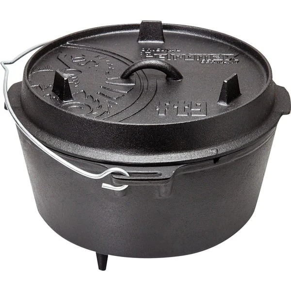 Der Feuertopf ft9 von Petromax eignet sich für 8 – 14 Personen. Die Petromax Feuertöpfe, auch als Dutch Oven bezeichnet, sind ideale Begleiter für Draußen-Aktivitäten wie Reisen, Camping, etc. Mit ihnen garen Speisen, wie z.B. Fleisch und Gemüse, sehr schonend im eigenen Saft über offenem Feuer oder im heimischen Backofen. Der einzigartige Geschmack entsteht durch die konstante Rundumwärme im Topf. Die Deckel der Feuertöpfe können zudem auf Wunsch als Servierplatte oder Pfanne genutzt werden. Dank der vorbehandelten Oberfläche (seasoned finished) ist der robuste Petromax Feuertopf aus Gusseisen sofort verwendbar. Mit den Petromax Feuertöpfen kann man draußen leckeres und gesundes Essen für Familie und Freunde zubereiten.Art.-Nr.: 1532709