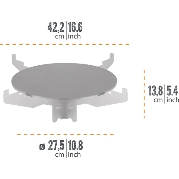 Mit der Grillplatte von Petromax erweitert man den Raketenofen um eine typisch spanische Plancha-Platte mit durchdachten Details. Die in Deutschland hergestellte Grillplatte aus 0,6mm dickem geöltem Stahl ermöglicht eine vielseitige Nutzung, saftige Fleisch-, Fisch- und Gemüsevariationen lassen sich auf der passgenauen Platte bruzzeln. Die sich bildende Patina sorgt für einen natürlichen Antihafteffekt, der von Mal zu Mal besser wird. Vor dem ersten Gebrauch sollte die Grillplatte dafür sorgfältig eingebrannt werden. Dank des Raketenofen-Kamineffekts heizt sie schnell auf, und das Kochkreuz fördert die Luftzirkulation für eine gleichmäßige Hitze. Feuertöpfe mit Füßen, Feuerpfannen, Perkolatoren und sogar die fs38 Feuerschale kann man ebenfalls einfach auf das Kochkreuz stellen, so sind den Kochabenteuern keine Grenzen gesetzt. Egal, ob herzhaftes Pfannengericht, Dutch Oven-Köstlichkeiten oder frisch gebrühter Kaffee im Perkolator, das flexible Kochkreuz erweitert die Möglichkeiten des Raketenofens. Durch die flache Ausführung und das steckbare Trägergestell kann sie leicht im Auto oder Van verstaut und als vielfältige Koch- und Grillstation für jeden Ausflug in Wald und Flur genutzt werden. Die Grillplatte ist ein problemloser Begleiter bei jedem Outdoor-Abenteuer.Art.-Nr.: 100013024